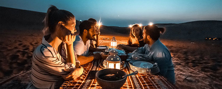 Finally, you will end your Tour adventure under the open night sky, Enjoy delicious buffet dinner ( veg & non veg ), with plenty of cool drinks available. You will also be treated to traditional entertainment such as Live Fire Show, Belly Dance and Tanura show while you eat. After show finish make your Friends, family Group Photo Session that you had Best Desert Safari in Dubai and then drive back to dubai to drop off you.